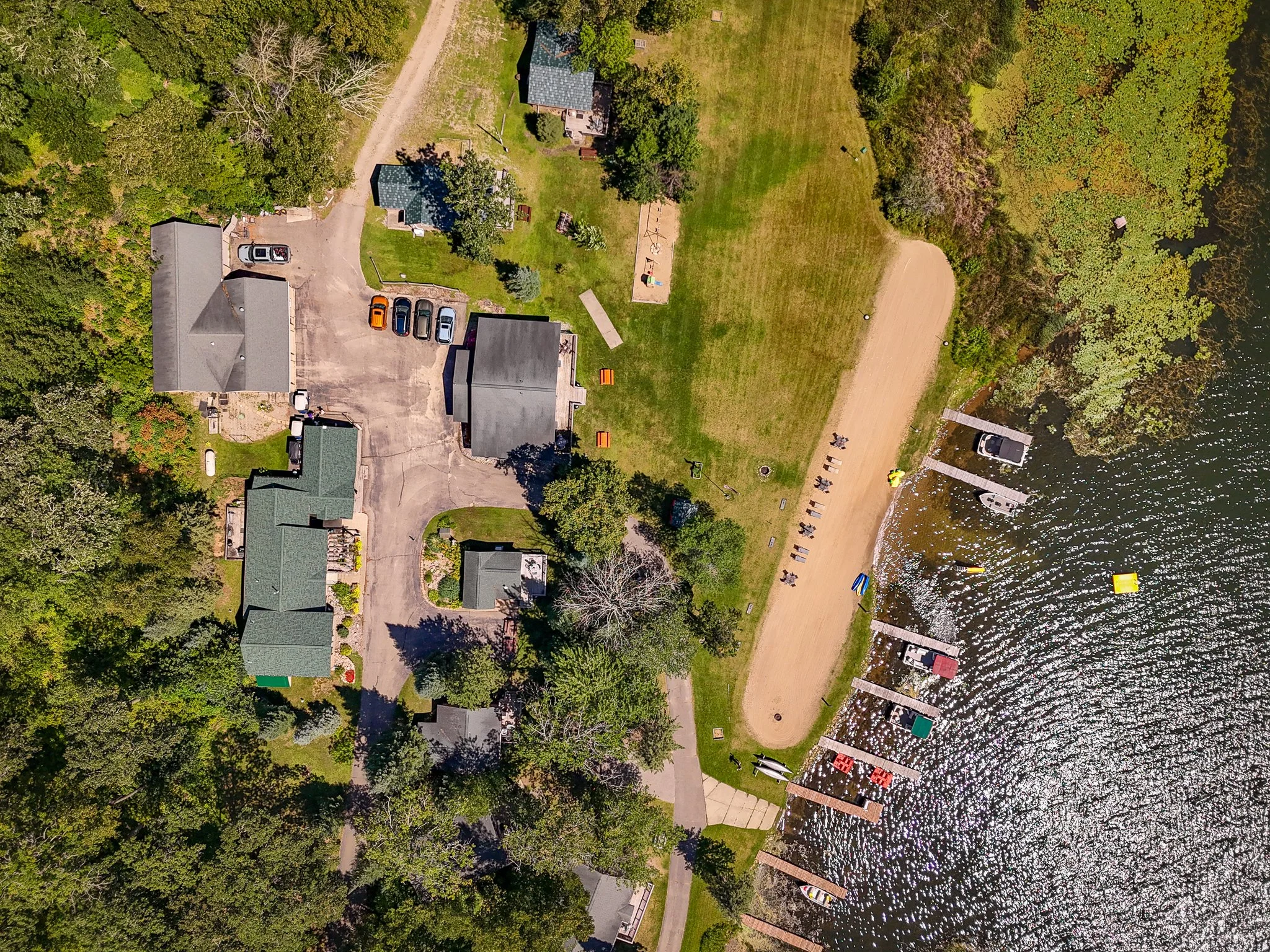 The lodge sells ice-cream novelties, pizza, clothing and merchandise, and serves as the office for guest’s needs. The lakeshore is home to an extensive docking system, providing 22 dock spaces for guest’s and resort boats, a huge beach with ample seating and quality water toys, and a private boat launch. The back acreage has 2 miles of groomed and marked hiking trails, a 9 hole disc golf course, a pickleball court, a 42 x 60 Morton building and a natural bald eagle nest.